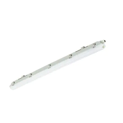 La réglette LED, Philips Réglette LED Étanche Ledinaire WT065C 23/42W 2900/4800lm - 840 | 120cm - Câblage Traversant est conçue pour remplacer les réglettes TL-D traditionnelles et permettant d’économiser jusqu’à 50% d’énergie. Très souvent utilisé pour l’éclairage d’entrepôts, d’usines, de parking et d’autres grands espaces extérieurs. Très simple d’installation, cette réglette de 120cm peut se fixer au plafond et au mur et projette 4000K - Blanc Froid, comme couleur de lumière. La Philips Réglette LED Étanche Ledinaire WT065C 23/42W 2900/4800lm - 840 | 120cm - Câblage Traversant dispose d’un indice de protection IP65 à l’eau et la poussière et d’une résistance aux chocs IK08.